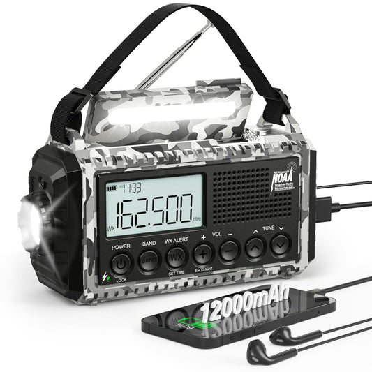 Auto NOAA Emergency Weather Radio, Solar Hand Crank Radio,Portable Battery Operated Emergency Radio with AM FM Shortwave,USB Charger,LED Flashlight,Clock, SOS Alert for Home Outdoors Camping Survival