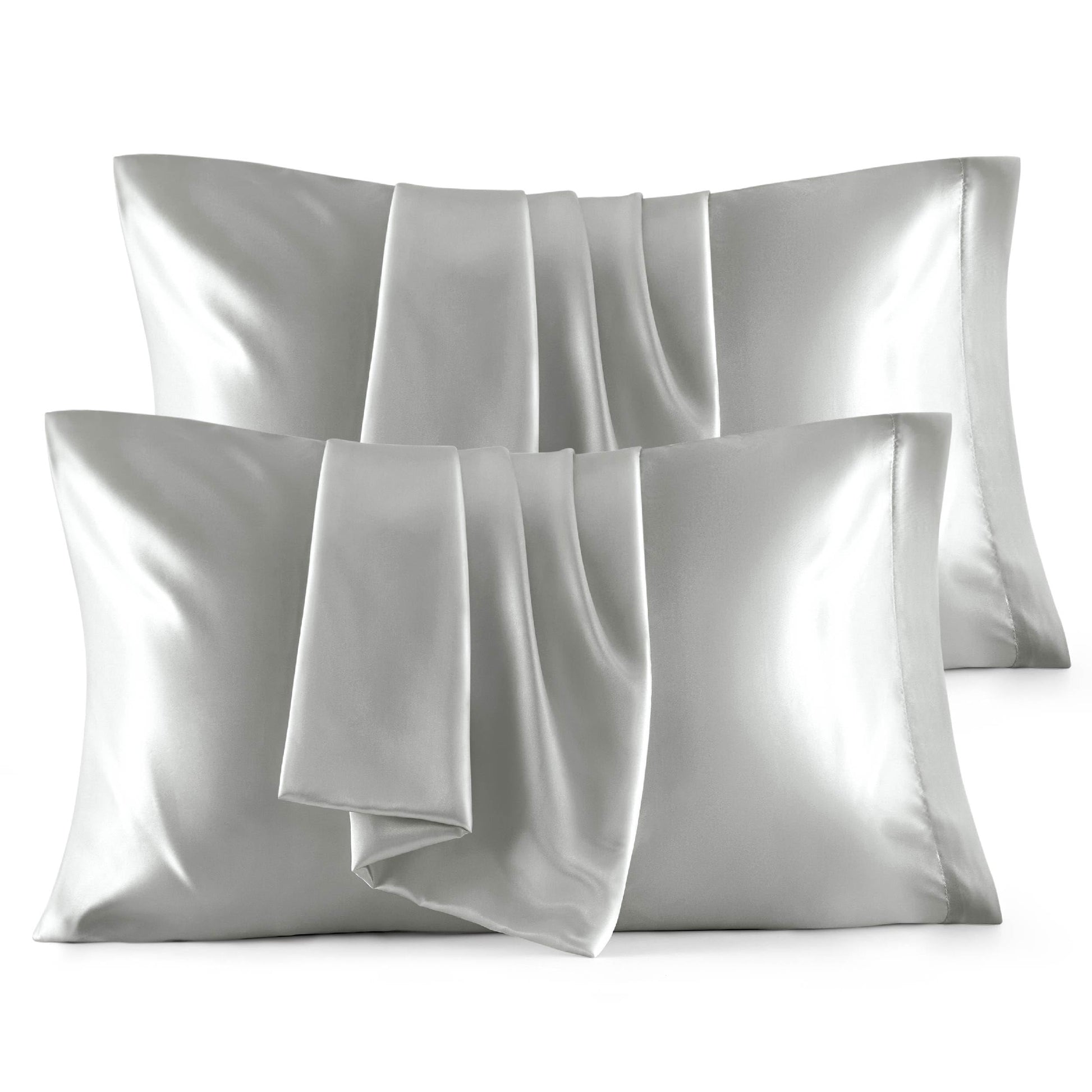 Bedsure Satin Pillowcase, Similar to Silk Pillow Cases Queen Size Set of 2, Cooling Pillow Case Covers with Envelope Closure, Room Decor Valentine Gifts for Women Men, Silver Grey, 20x30 Inches, 2pcs
