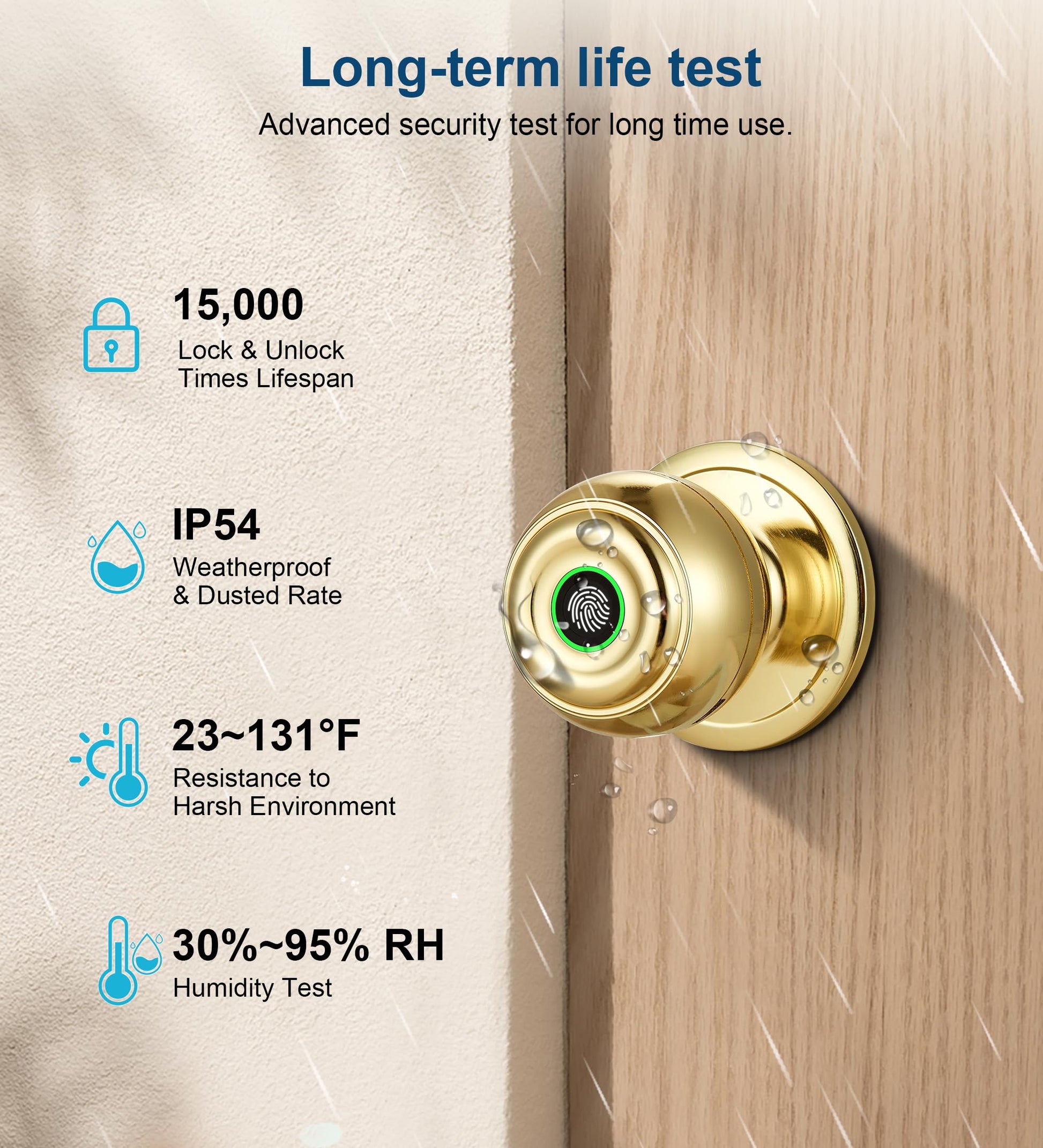 - 3-IN-1 BIOMETRIC DOOR KNOB: The ultimate security solution for your smart home or office. Whether you prefer the convenience of a thumbprint door knob, the security of App control, or the reliability of traditional keys, the KLLOQUE smart door knob meets your need. Great fingerprint door lock for bedroom, living room, apartment etc.