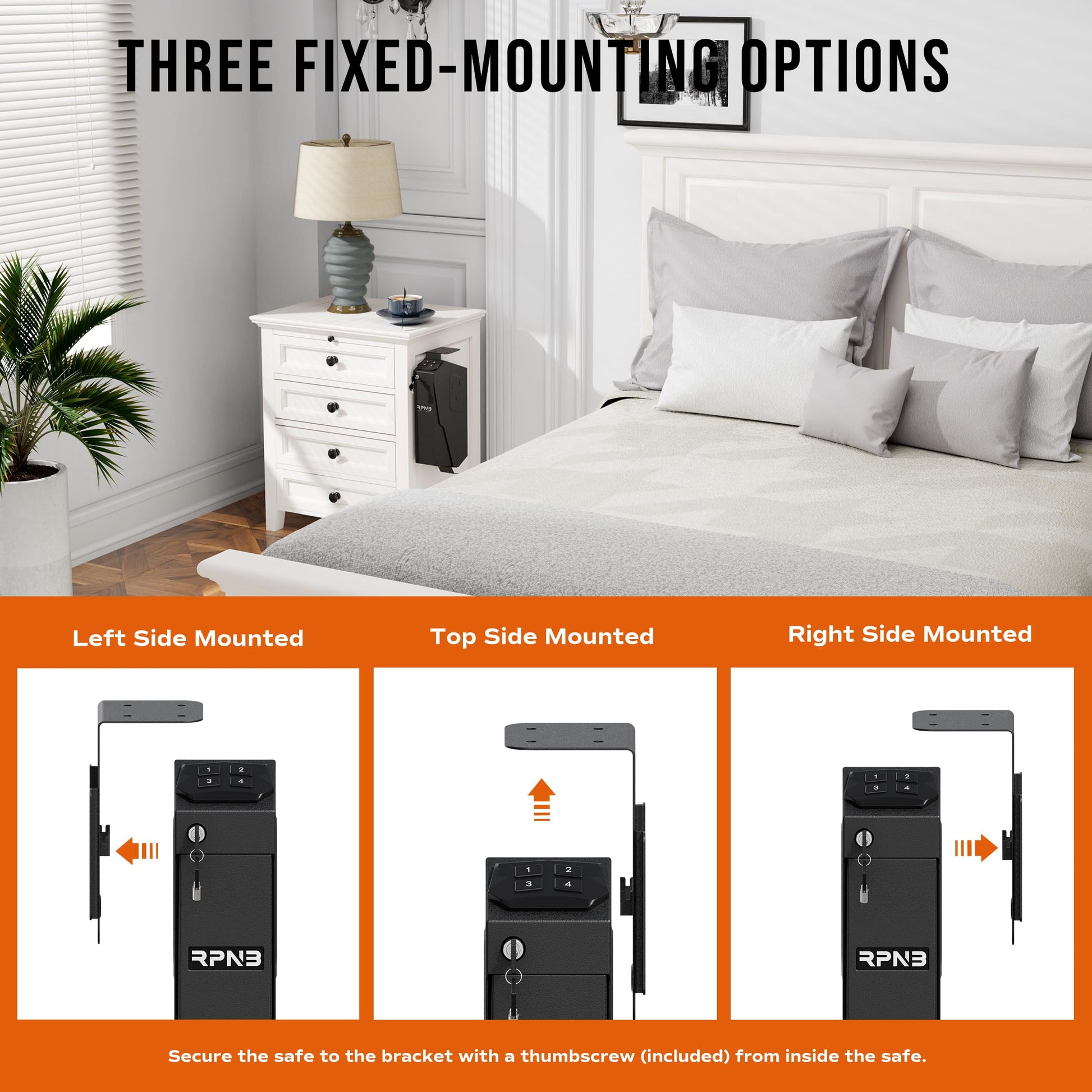 RPNB Mounted Gun Safe,California DOJ Certified Handgun Safe, Auto Open Lid Smart Pistol Safe with Biometric Fingerprint or Keypad Lock
