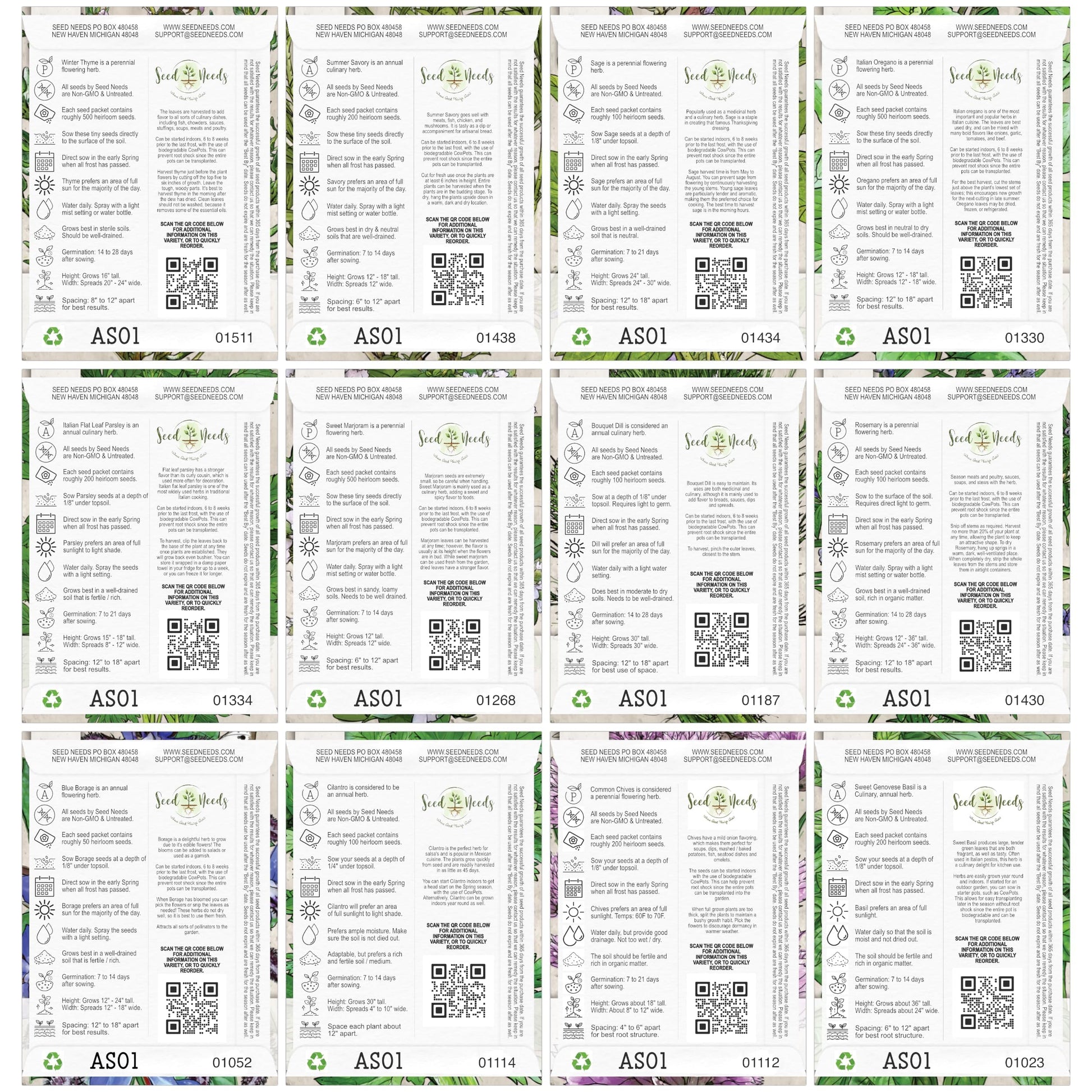 - Quality - All herb seeds packaged by Seed Needs are intended for the current and the following growing seasons. All seeds are stored in a temperature controlled facility that is free of significant amounts of moisture.