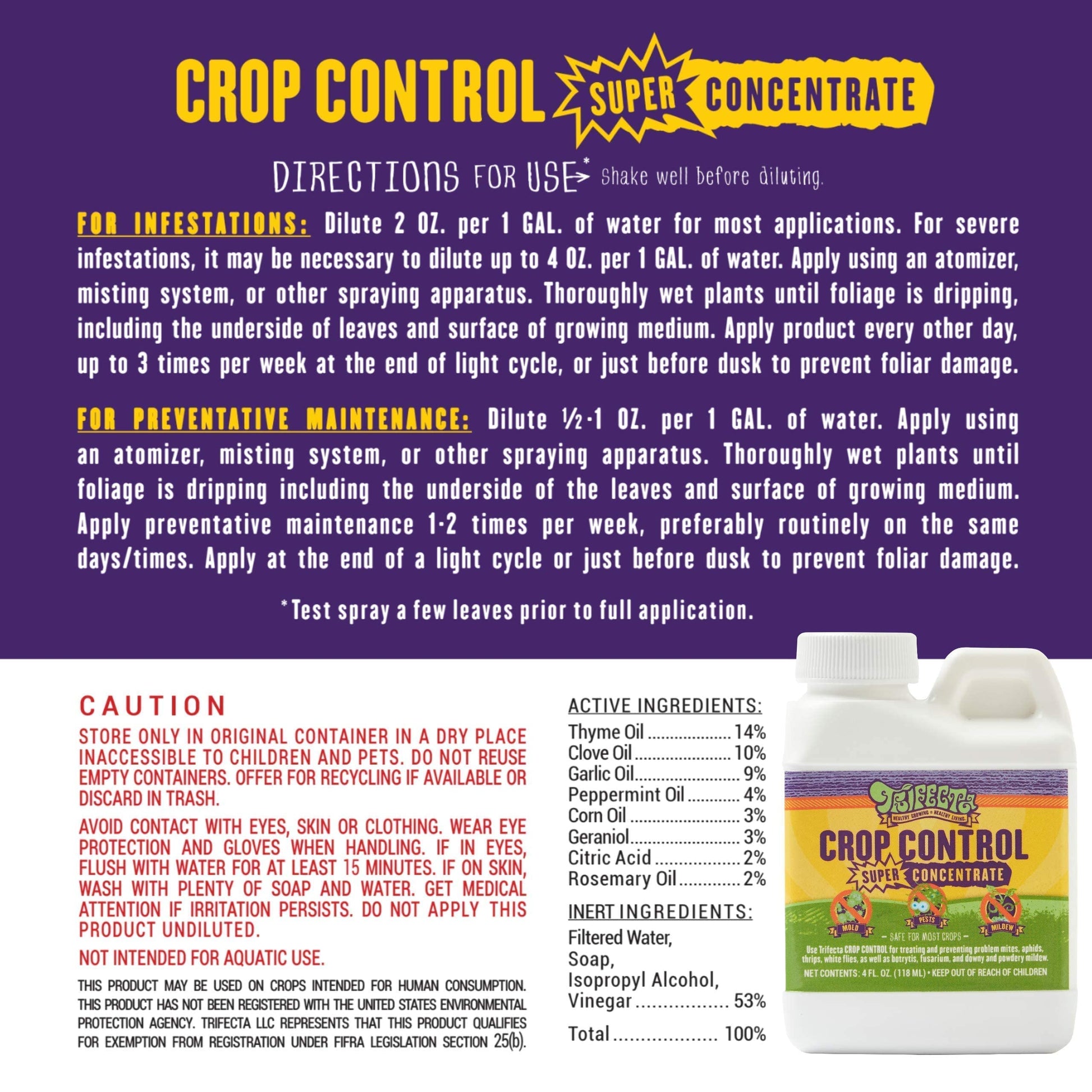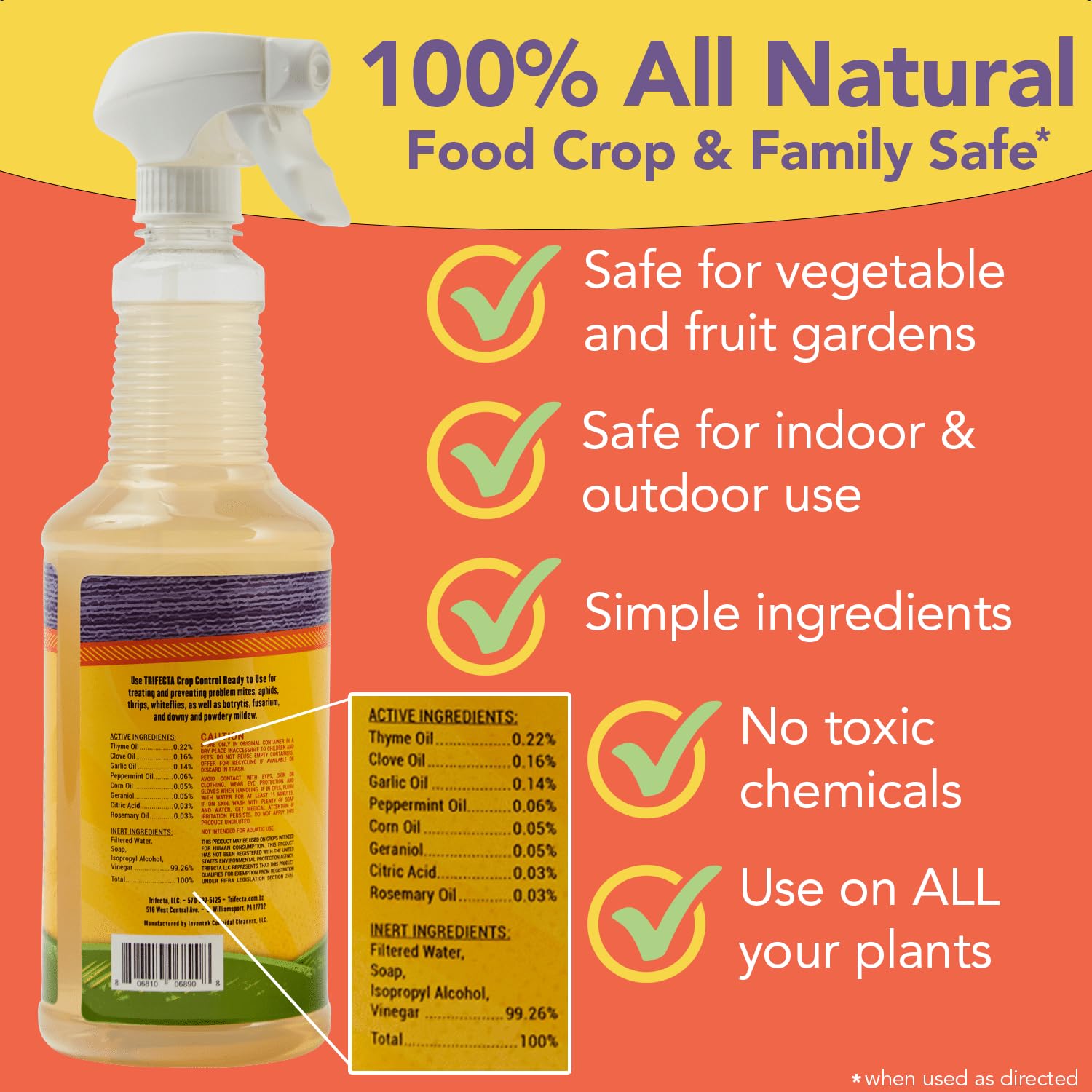 Trifecta Crop Control Ready to Use Maximum Strength Natural Pesticide, Fungicide, Miticide, Insecticide, Help Defeat Spider Mites, Powdery Mildew, Botrytis and Mold on Plants 32 OZ Size