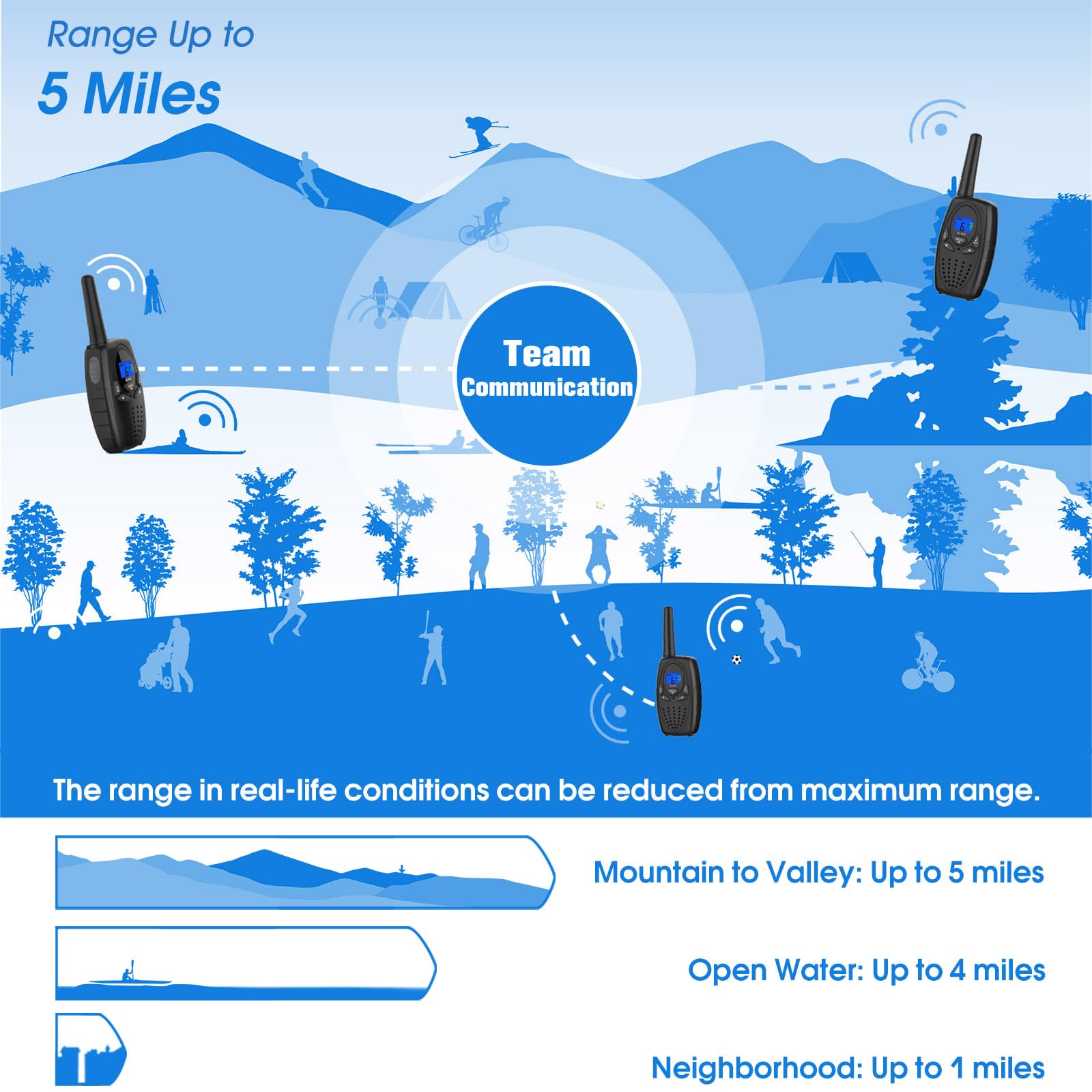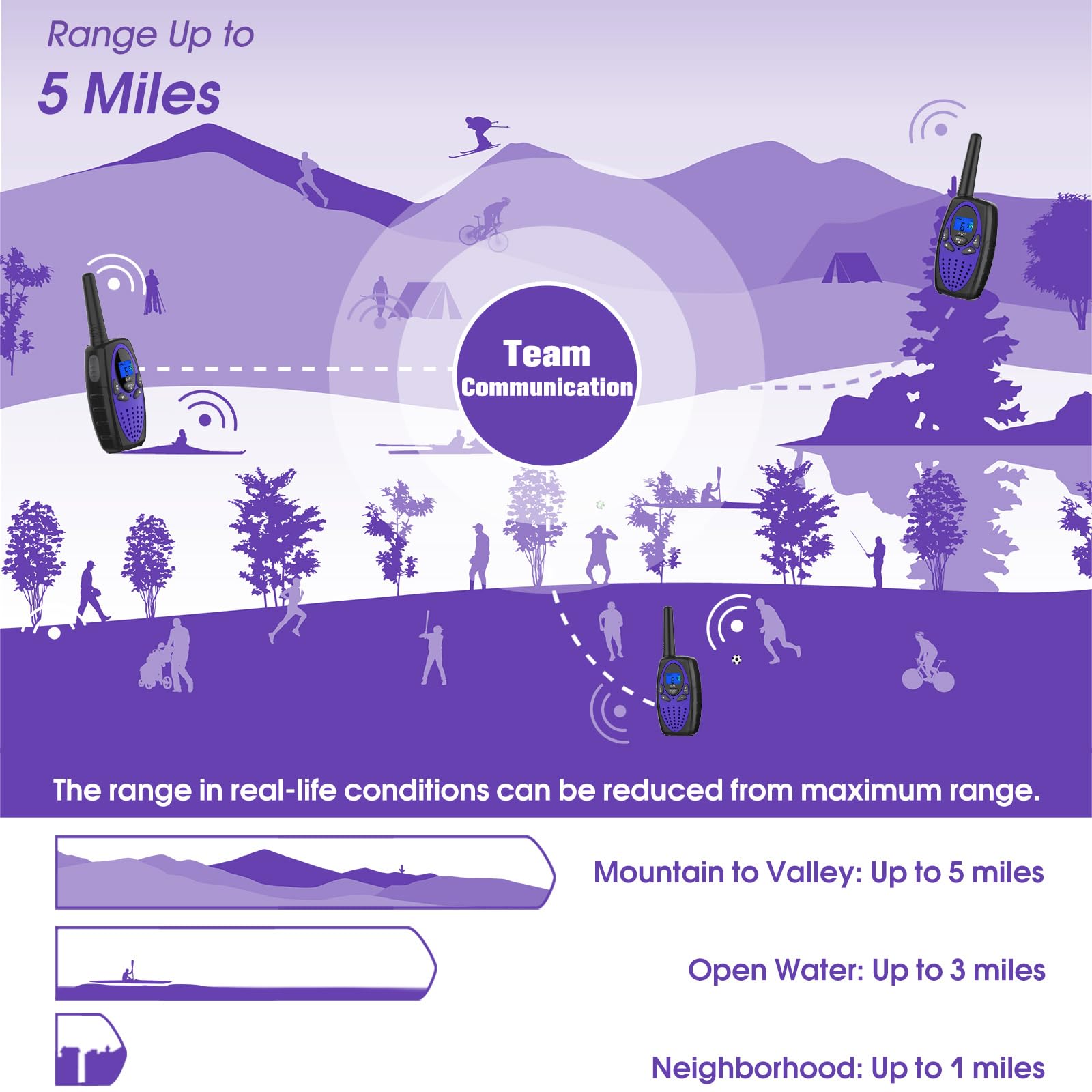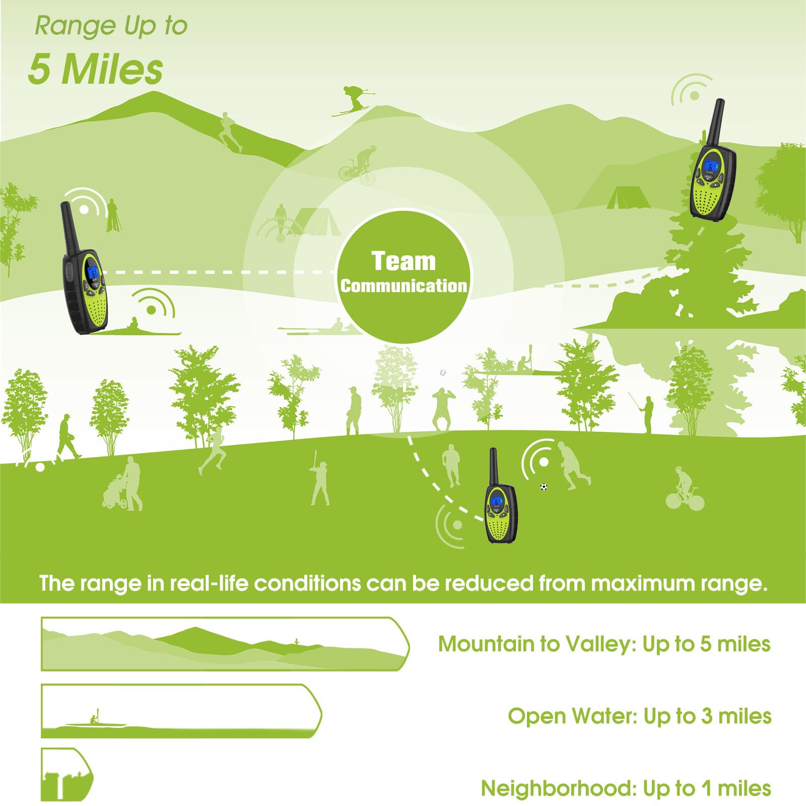 3. Long range in different terrains ( Up to 1 / 3 / 5 miles )