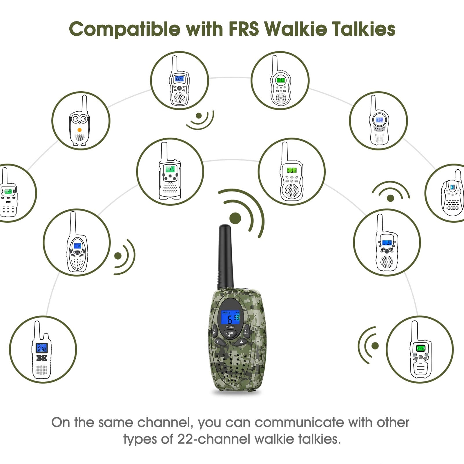 - 【Main Parameters】:22 main channels and 121 privacy codes(2662 Combinations), Long range in different terrains(Up to 1/3/5 miles), Long standby time(Up to 3-4 days), Power by 3 AA batteries(Not included)